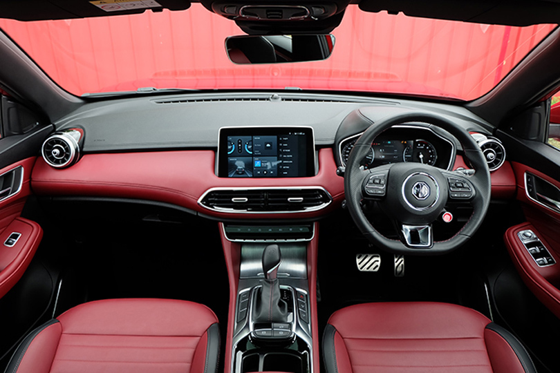 最上級のXトリムのMG HS 1.5 Xのインテリアはプレミアムな印象で、ソフトタッチ素材とレザーシートが高級感を演出します。